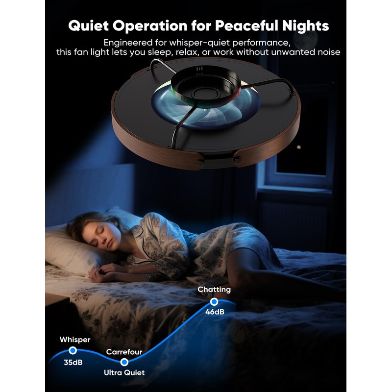- Dual Control System: Remote + Bluetooth App: Take full control of your comfort with two flexible control methods. Use the included remote to adjust wind speed, change light modes, set timers, and reverse the fan direction—all without leaving your bed. For even more convenience, connect via Bluetooth using the dedicated mobile app to access all fan and lighting functions directly from your smartphone. No Wi-Fi required. Perfect for tech-savvy users who want smart features without complex setup.