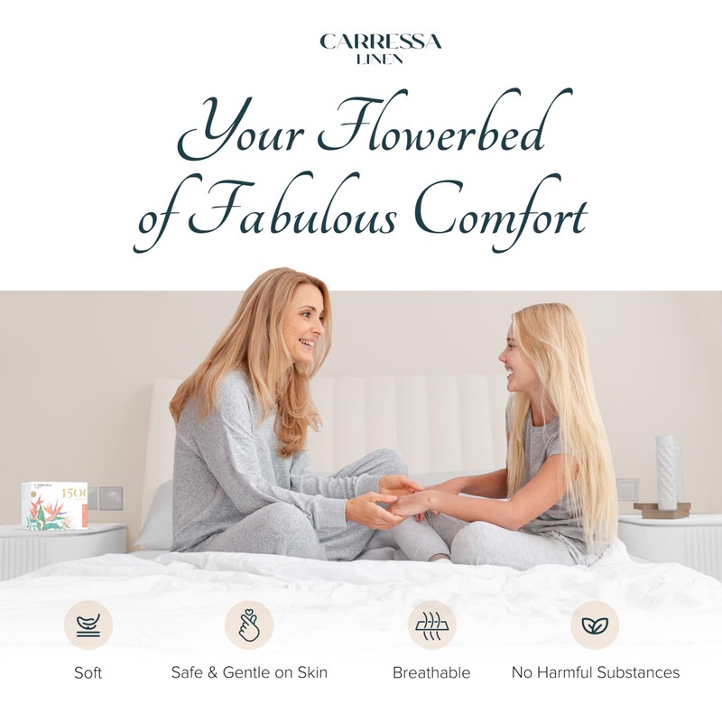 - Authenticated for Exemplary Quality and Purity: At Carressa Linen, we uphold the highest standards of excellence and authenticity. Each queen bedsheets set undergoes meticulous mercerization, imparting genuine softness and durability. Independently validated by OEKO-TEX, our deep pocket luxury queen sheets are certified free from harmful substances, ensuring a peaceful and luxurious sanctuary for you and your loved ones