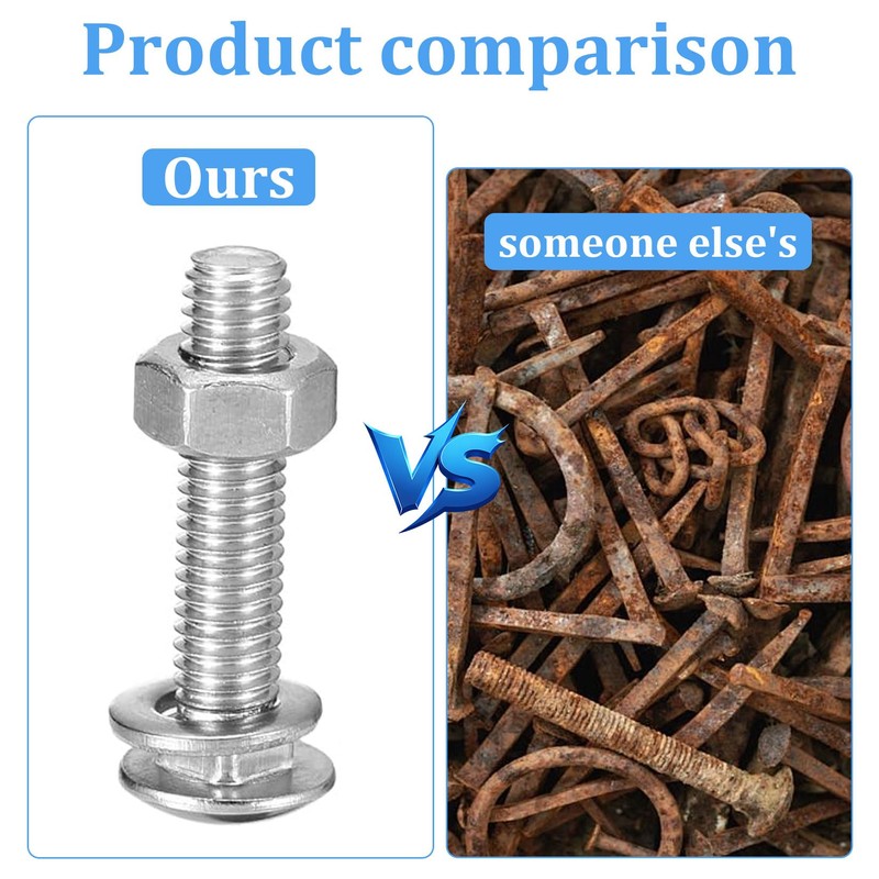 1. M6 screws with nut is made of A2 V2A stainless steel with smooth, burr-free surface, high strength and non-deformation, long-term rust protection and is suitable for various indoor and outdoor areas.