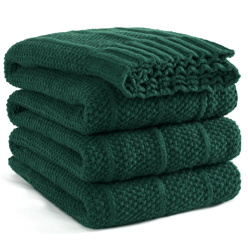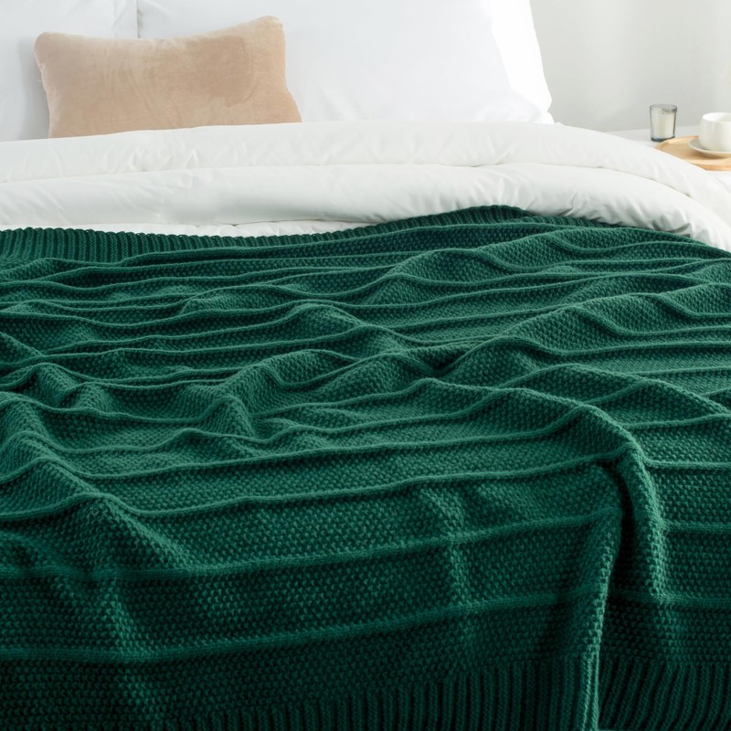 Carriediosa Knit Throw Blanket for Couch 50" X 60", Soft Cozy Stripe Pattern Cable Knitted Throws Fall Fluffy Textured Solid Home Decor Blankets Couch Cover for Bed Sofa, Dark Green