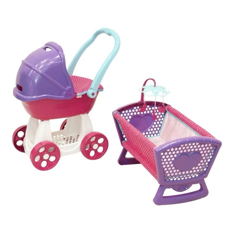 Carriolita Y Cuna Para Muñecas Combo Baby Prinsel Rosa