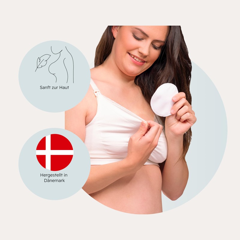 - IMPROVED ABSORBENCY WITH EVERY WASH: Thanks to an absorbent Oeko-Tex certified layer, the pads absorb breast milk quickly and effectively. The suction power improves even after repeated washing.