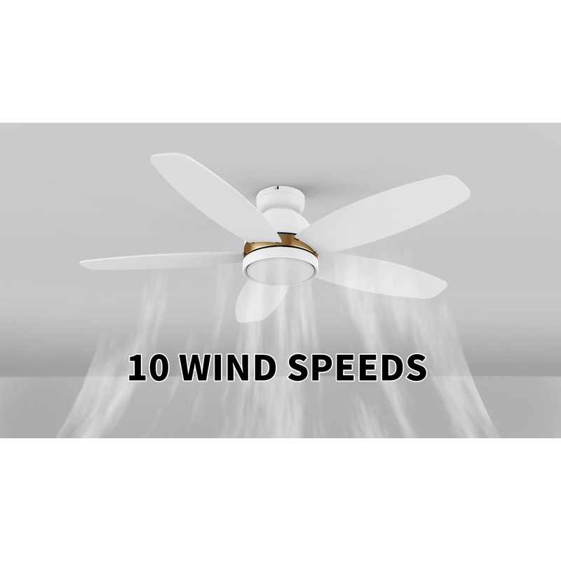 - 【Efficient DC Motor with 10 Speeds】This modern, white DC motor ceiling fan offers powerful airflow and silent operation with 10 speeds to choose from. Use downdraft for summer cooling and updraft in winter for warmth. With an energy-saving design, this low-profile fan consumes 75% less power than traditional fans, making it a smart choice for year-round comfort.