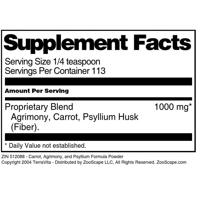 - Carrot, Agrimony, and Psyllium Formula Powder (4 oz, ZIN: 512088)