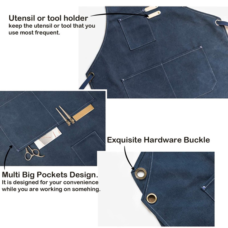 - Double stitched pockets for high functionality and durability with 3 multipurpose pockets in the front. Practical to put in your cell phone, recipe cards, pens, notebook, grill slips, meat thermometer and other items you need. Convenient for gadget storage. Work apron, shop apron.
