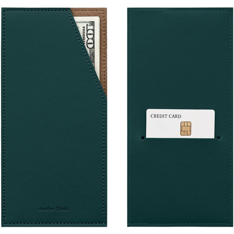 carrotez PU Leather Card and Cash Envelope for Travel and Budgeting, Reusable Money Holder, Stylish Leather Money Envelope - Dark Green
