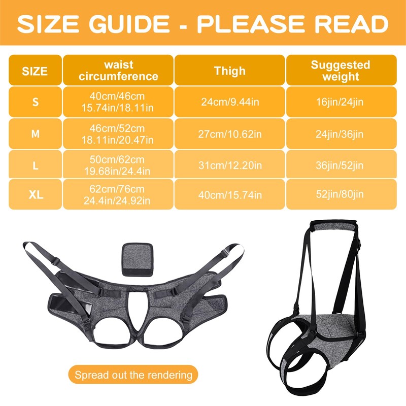 - Various sizes: Available in sizes S/M/L/XL, suitable for dogs of all sizes - from small dogs to large dogs. Choose the appropriate size according to your dog's waist and thigh circumference to help them stand, climb stairs or get in and out of the car.