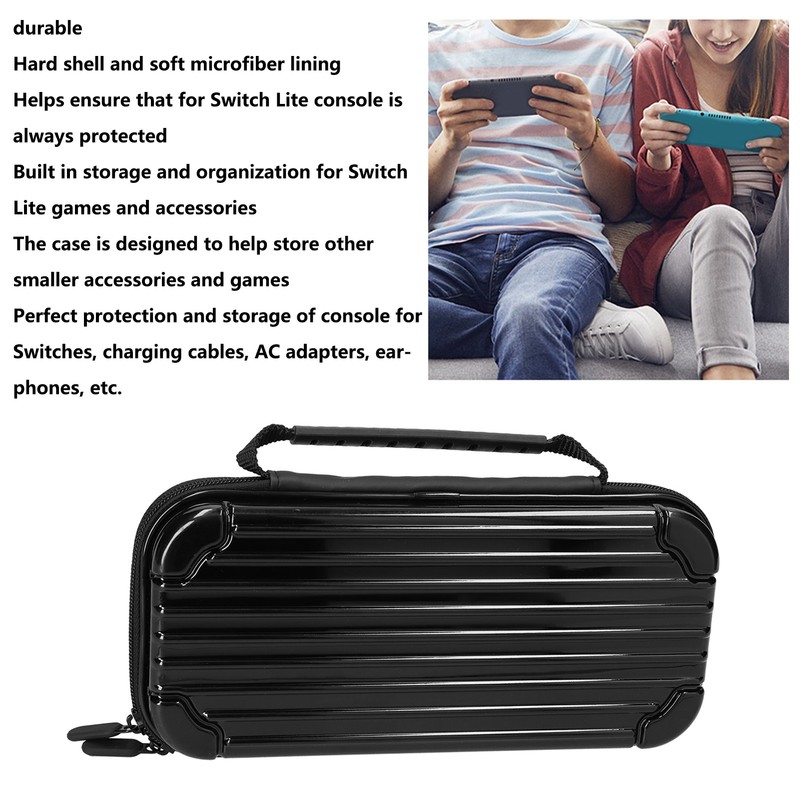 1、Hard shell and soft microfiber lining help ensure that for Switch Lite console is always protected. 2、Built in storage and organization for Switch Lite games and accessories, this case is designed to help store other smaller accessories and games. 3、Perfect protection and storage of console switches, charging cables, AC adapters, earphones, etc, provide high quality protection for Switch lite. 4、The soft microfiber lining provides a comfortable and comfortable home for Switch Lite, absolutely strong enough for plenty of daily protection. 5、Comes with a carrying handle to help you easily remove for Switch Lite from the case, and the hard shell prevents the machine from falling.