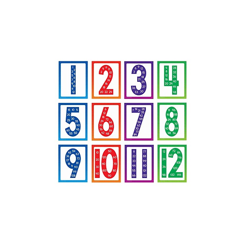 - What’s Included: The poster set includes 12 perforated classroom posters covering math facts/multiples with numbers 1-12.