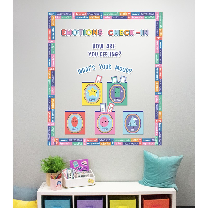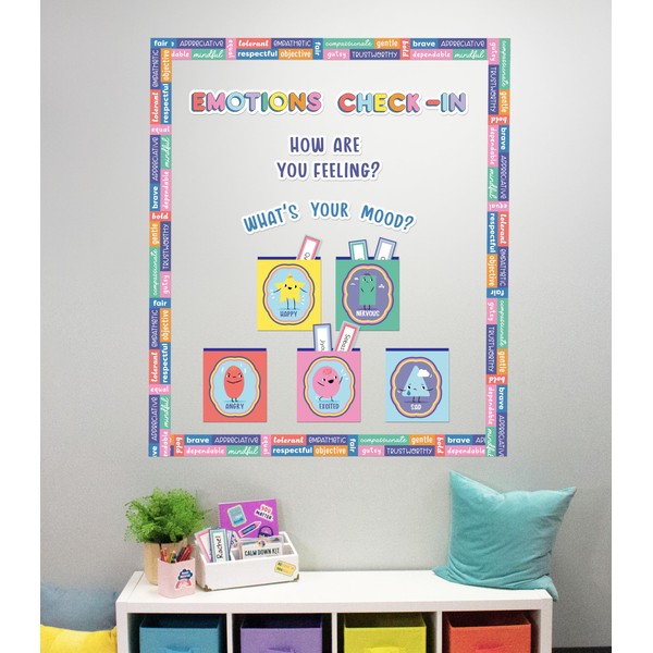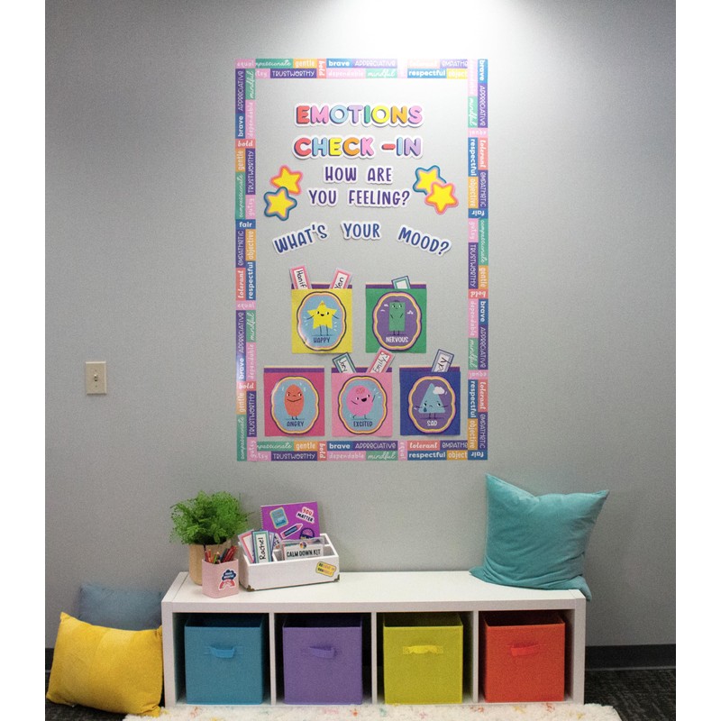 • Social Emotional Learning Classroom Décor: Check-in on your students' well-being with Carson Dellosa’s 46-piece We Stick Together Emotions Check-In Bulletin Board Set!