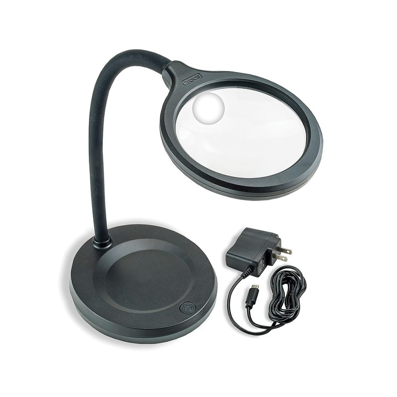 - The DeskBrite300 is a 2x Power Magnifying Desk Lamp with a 5x Spot Lens | Aspheric Lens Design For Distortion-Free and Crystal Clear Image Quality. Contains 4 Ultra-Bright COB LED Lights with Two Brightness Settings. The Flexible Neck Allows Users to Place the Magnifier Where You Need It Most | Lens Diameter: 4.0 inches. Desktop Hands-Free Magnifier is Dual Powered by USB-C to Wall Adapter (Included) or 3 AA Batteries (Not Included). Perfect Versatile Magnifier for...