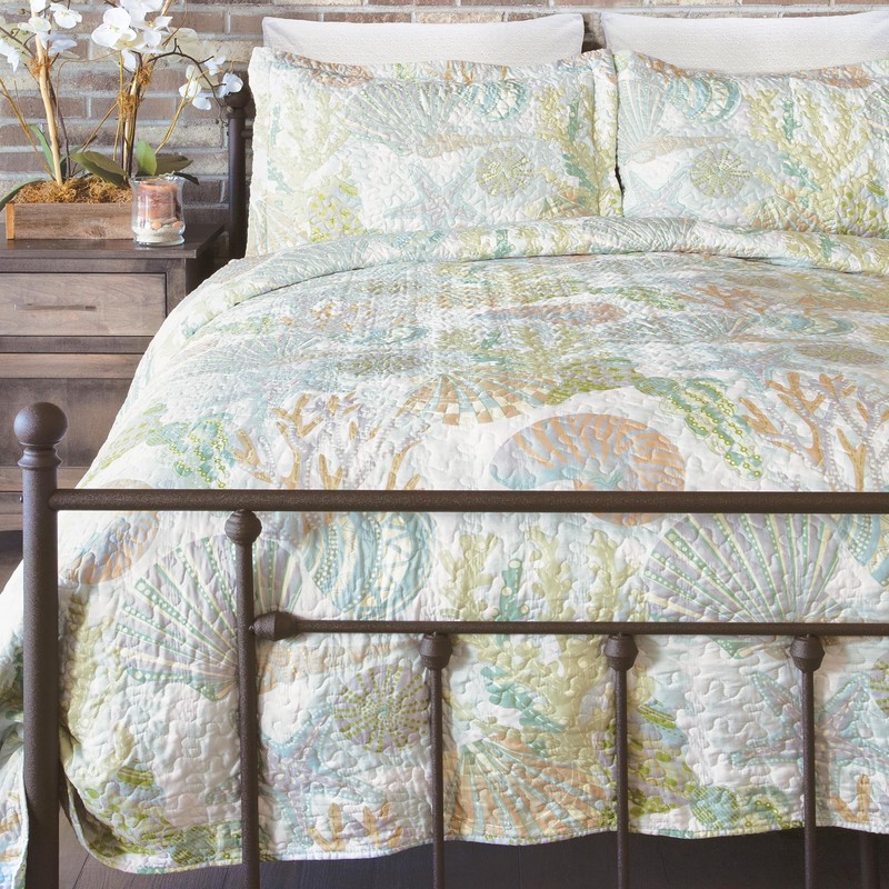 CARSTENS, INC. Coastal Beach Bedding Set, Nautical Microfiber Ocean Quilt, Coastal Reef, Full/Queen