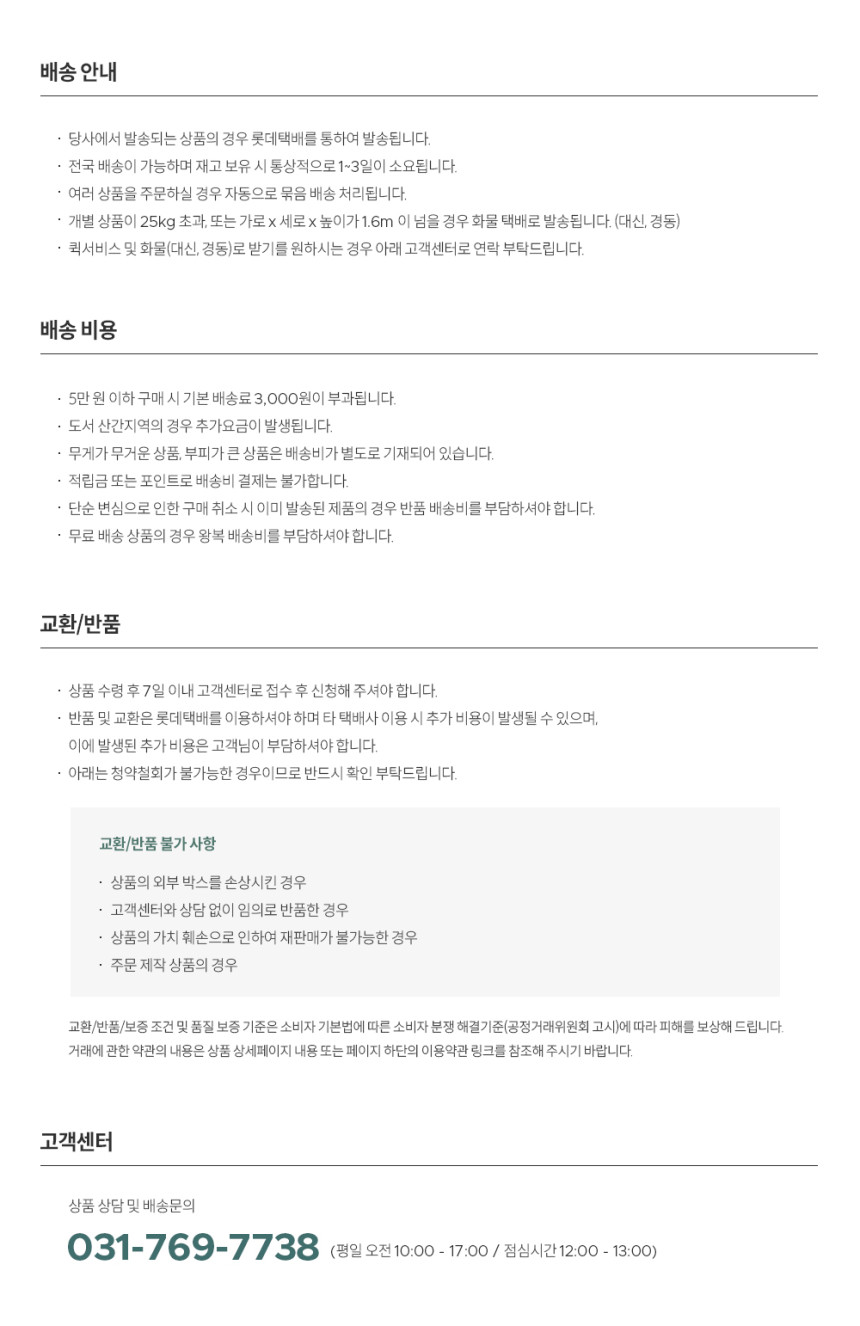 - A/S manager and phone number or consumer consultation phone number: 031-769-7738