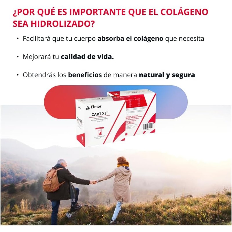 Suplemento alimenticio de colágeno hidrolizado 10 g por sobre Cart X3, paquete de 30 sobres