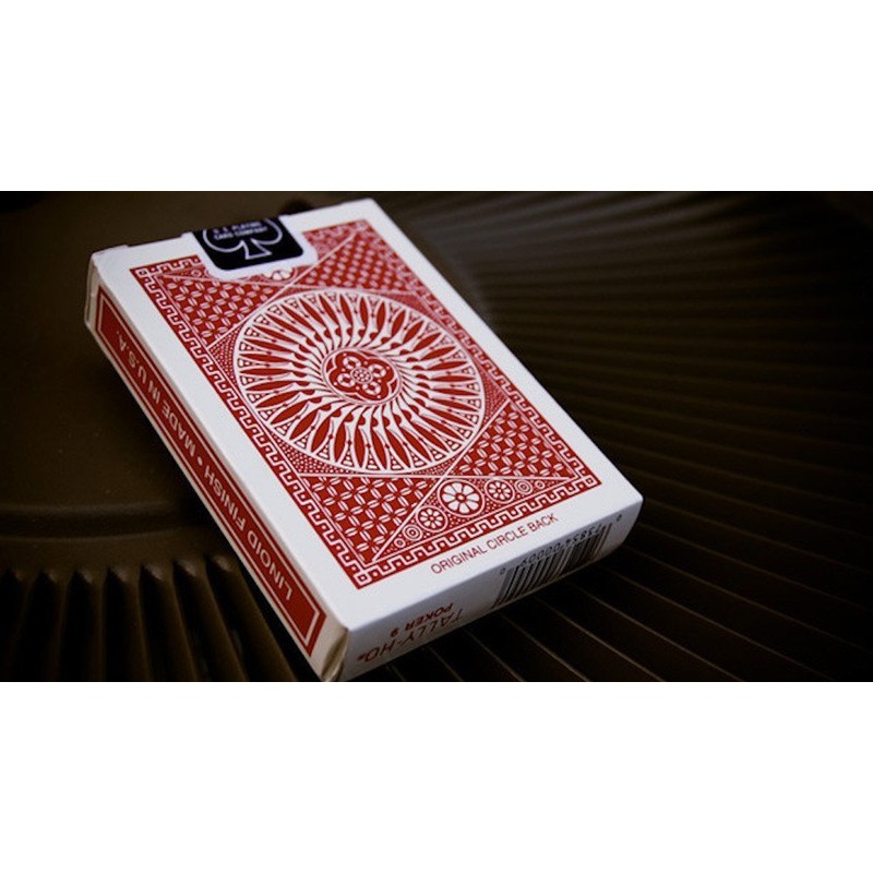 Durch das Drehen der Karte auf sich selbst, mit einer optischen Täuschung, wird die Rückseite der Karten lebendig und der zentrale Kreis gibt die 'Eindruck der Ablösung von der Karte. Verkauft von 2: 1 Blaues Spiel und 1 Red Spiel