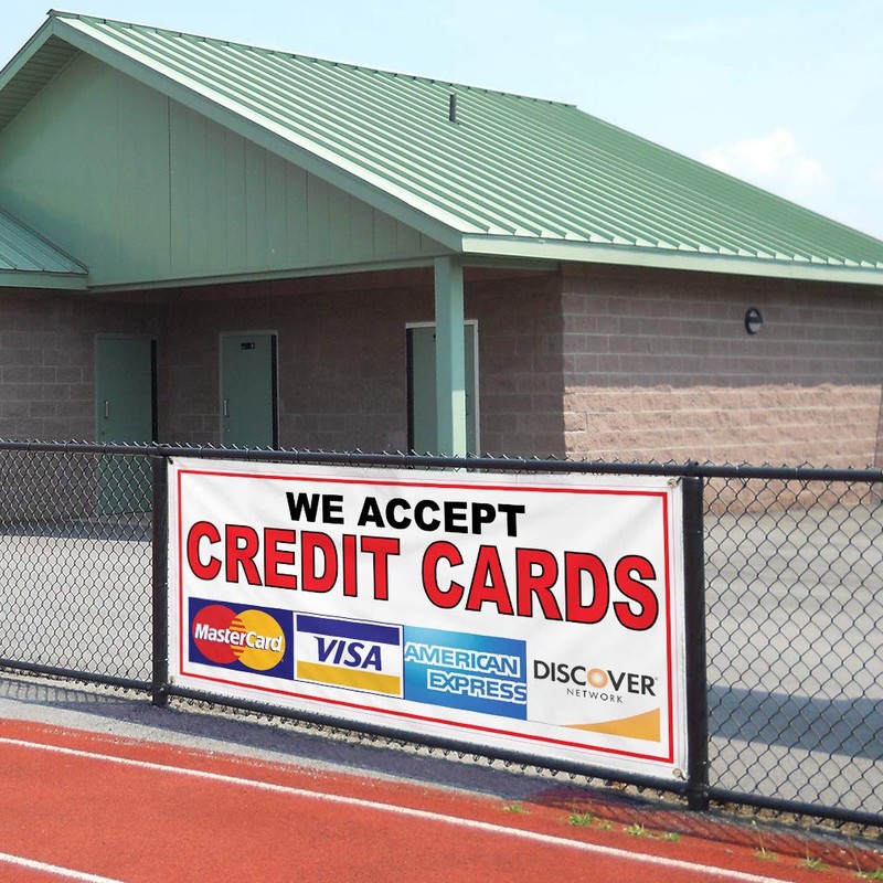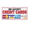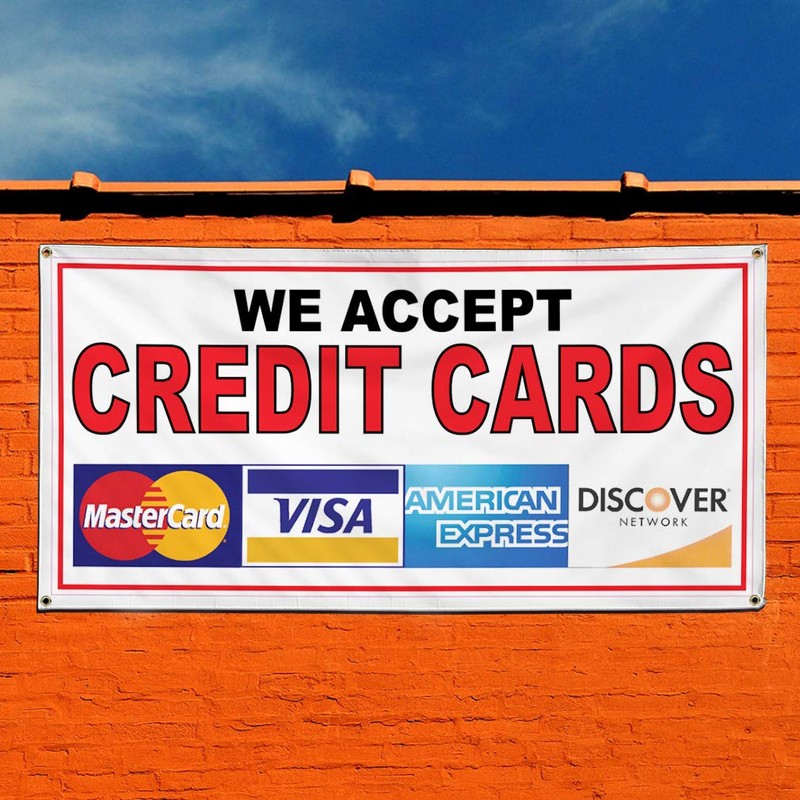 Cartel de vinilo con texto en inglés "We Accept Credit Cards Restaurant, Cafe, Bar, Marketing, Publicidad, Rojo, 12 x 30 pulgadas, 4 ojales, una pancarta