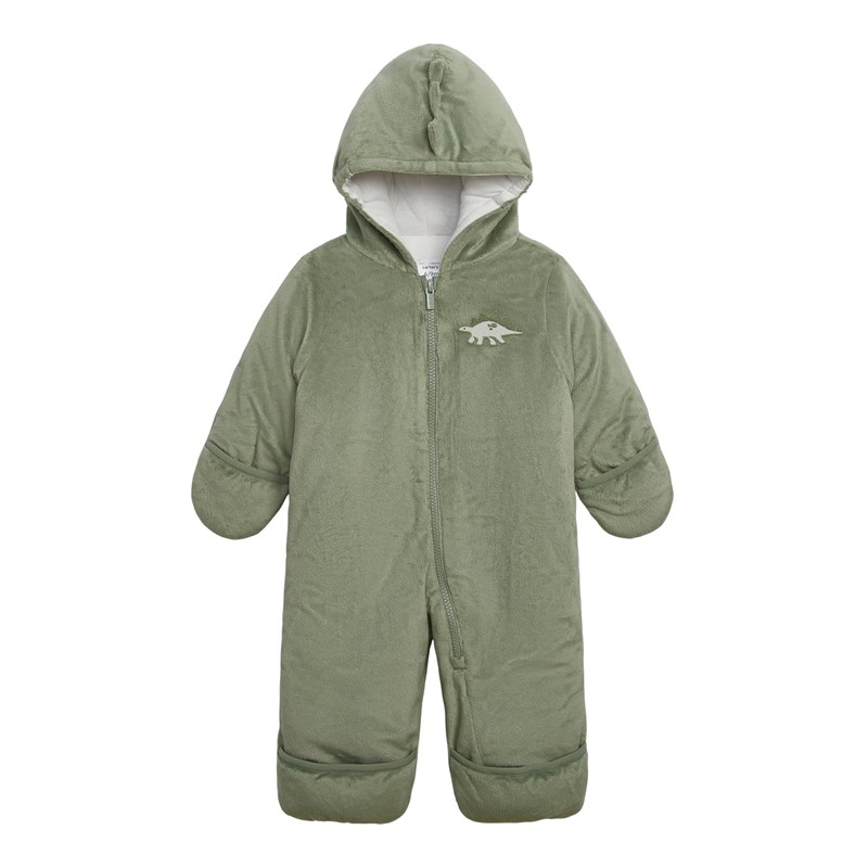 Carter's Infant Unisex Baby Cozy One-Piece Footed Pram Suit, Velboa Olive Green Dino, 6-9 Months