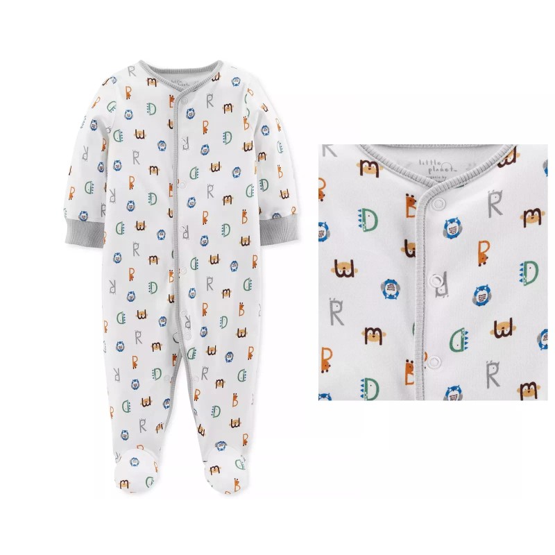 Little Planet Organics Baby Boys Alphabet-Print Cotton Coverall 9M 9 Months