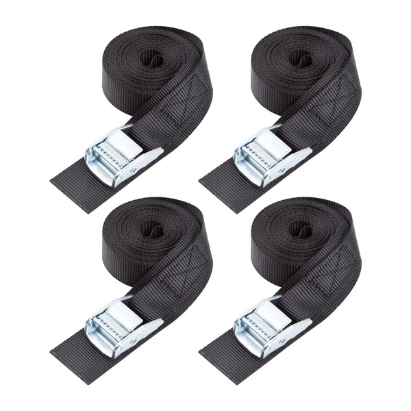 Cartman 1" x 15'Lashing Straps with Adjustable Cam Buckle Cargo Tie Down with Protective Pad, 4 Pack, Black
