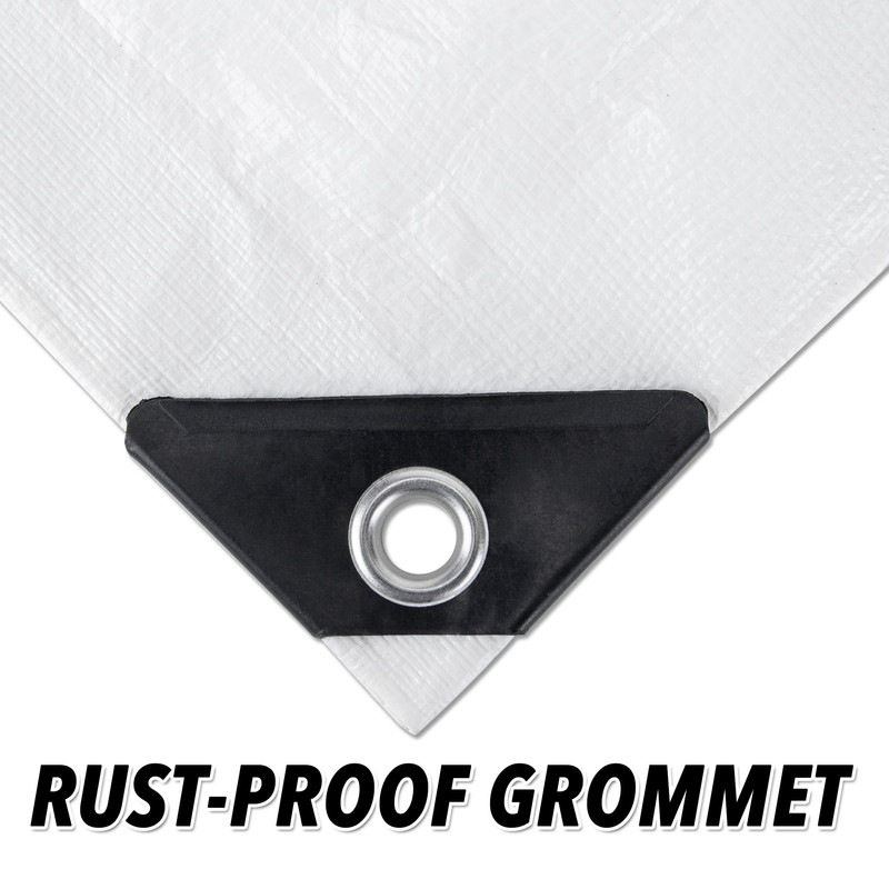 - CONVENIENT TO USE - The tarp has a metal grommet every 15-19 inch, making it easy to use and secure. Additionally, the plastic corner reinforcements at the four corners of the tarp make it more sturdy and aesthetically pleasing.