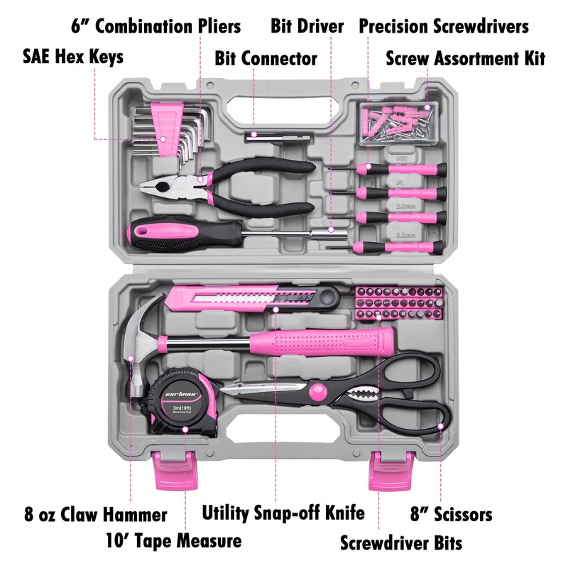 • Great gift idea: The pink tool set makes for a great gift idea for the DIY amateur or the avid handyman.