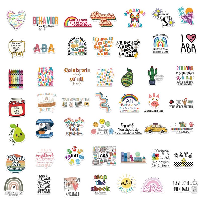 Cartoon ABA Stickers 50 Pack Laptop Stickers,Vinyl Waterproof Stickers for Water Bottles Skateboard Scrapbook Bike Computer,Phone,-Graffiti Stickers Pack for Teens Girls Kids Adults(Cartoon ABA)