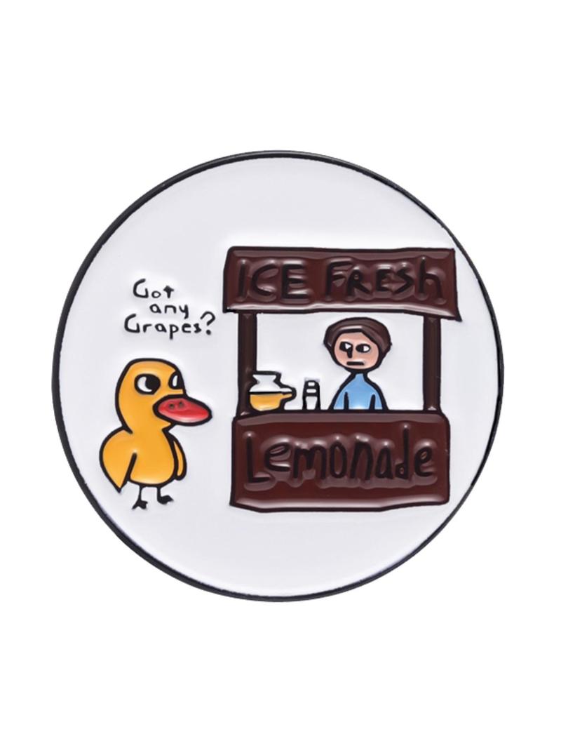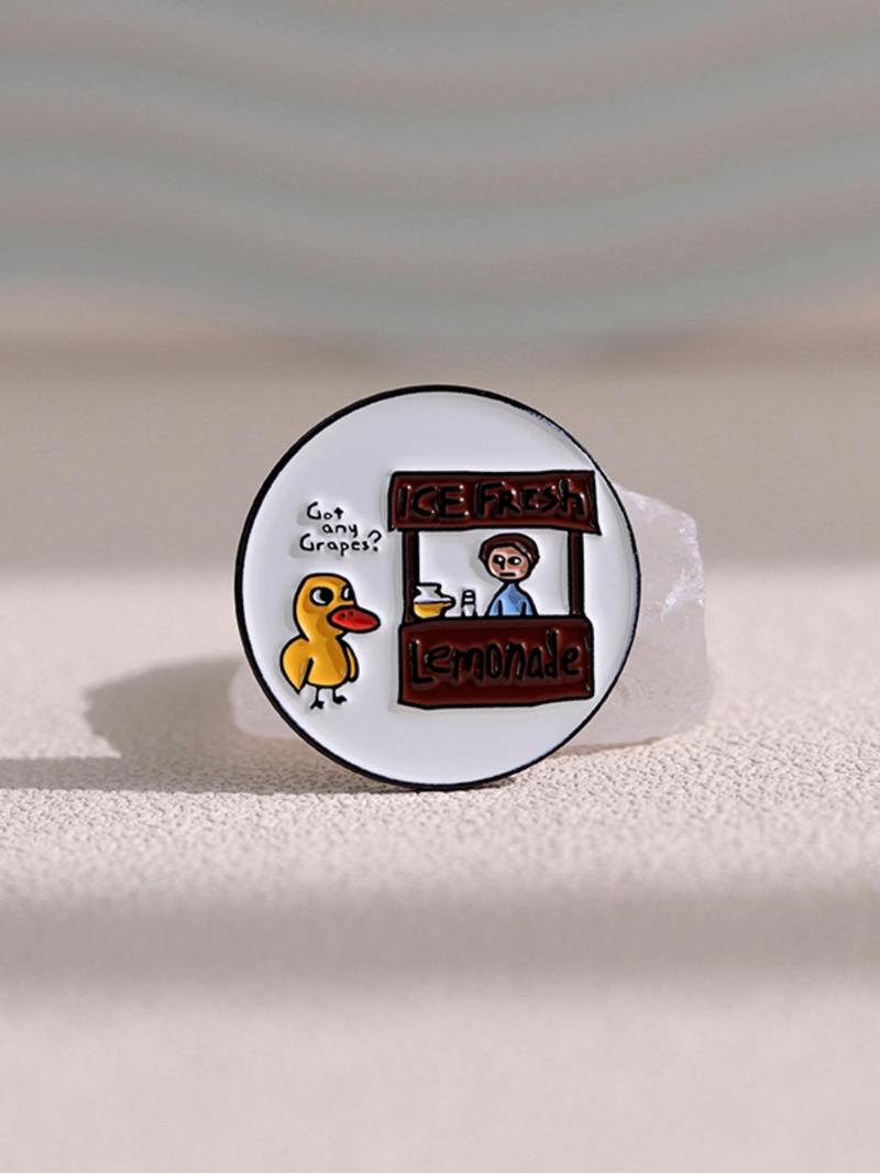 Cartoon Duck & Lemonade Store Design Round Shaped Brooch, Cute Fashion Alloy ...