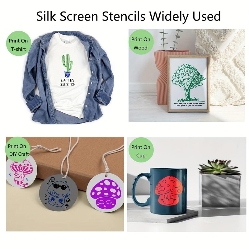 - đź’•SILK SCREEN STENCILSđź’• High quality self-adhesive screen printing stencils with plants theme sign: big mushroom, cartoon mushroom, inspirational worlds, wild flowers, which is suitable for DIY meaningful gift for birthday or other kinds of DIY production and home decoration