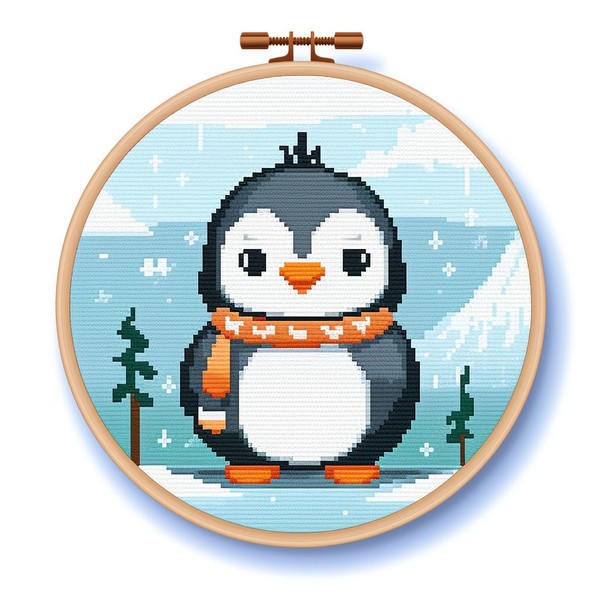 Cartoon Simple Penguin 11CT Stamped Cross Stitch Kits Easy for Beginners Child with Hoop DIY Needlepoint Counted Embroidery Kits Art Craft Wall Decor 12x12IN(5)