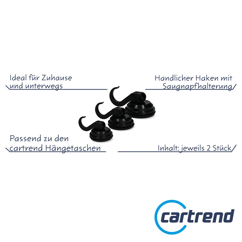 Cartrend Caravan 10218 Suction Cup Hooks 6 kg for Camping, Caravans, Motorhomes, Suction Hooks, Black, Set of 2