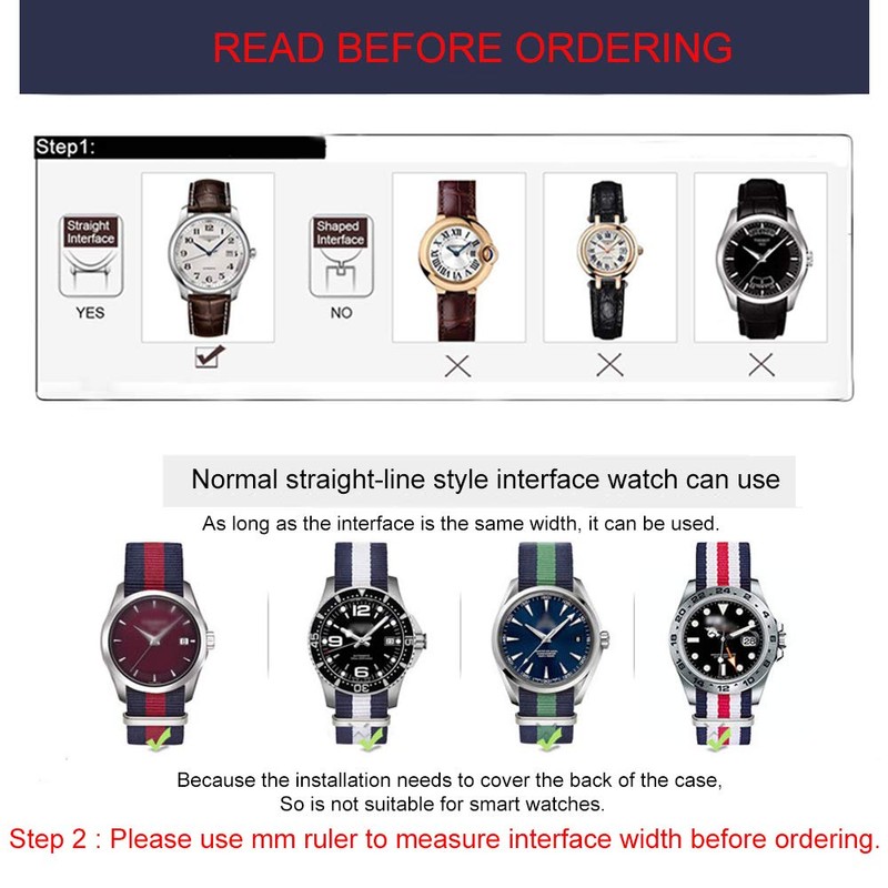 Though our Carty military nylon watch bands nearly cover all of the wrist and watch size, if you still think it did not fit as expect, or you have any other dissatisfaction, please email !