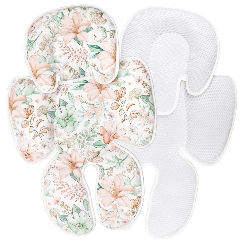 CARUILI 2-in-1 Reversible Infant Car Seat Insert, Ultra Breathable Newborn Car Seat Head Support for Summer, Baby Car Seat Cushion for Swing, Stroller, Bouncer, Floral Pattern