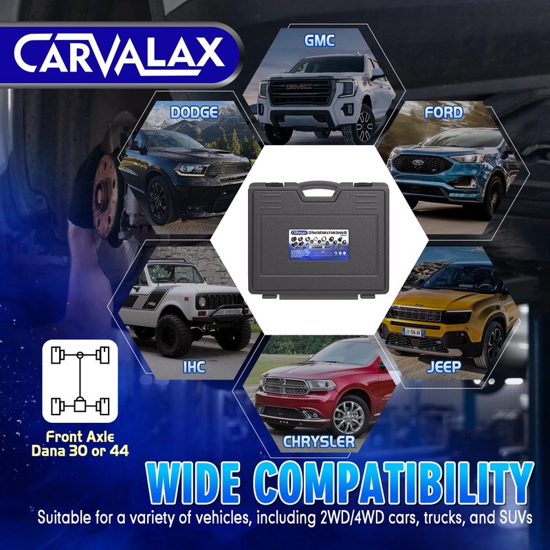 - WIDE COMPATIBILITY: Suitable for a variety of vehicles, including most 2WD/4WD cars, trucks, and SUVs of all the popular brands. It also includes two specially designed 2x4-point sockets (1-59/64” and 2-9/64”) for Chrysler vehicle’s uniquely threaded upper ball joints. This kit is ideal for a range of automotive applications, making it a must-have addition to your garage or workshop.