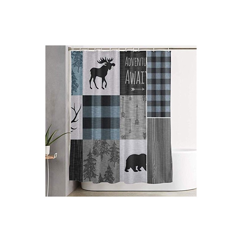Carwayii Retro Rustic Lodge Bear Moose Deer Shower Curtain Polyester Quick Dry Bath Curtain Machine Washable Premium Bathroom Curtain Lightweight Bathroom Accessories for Home Bathroom Decor 72x72Inch