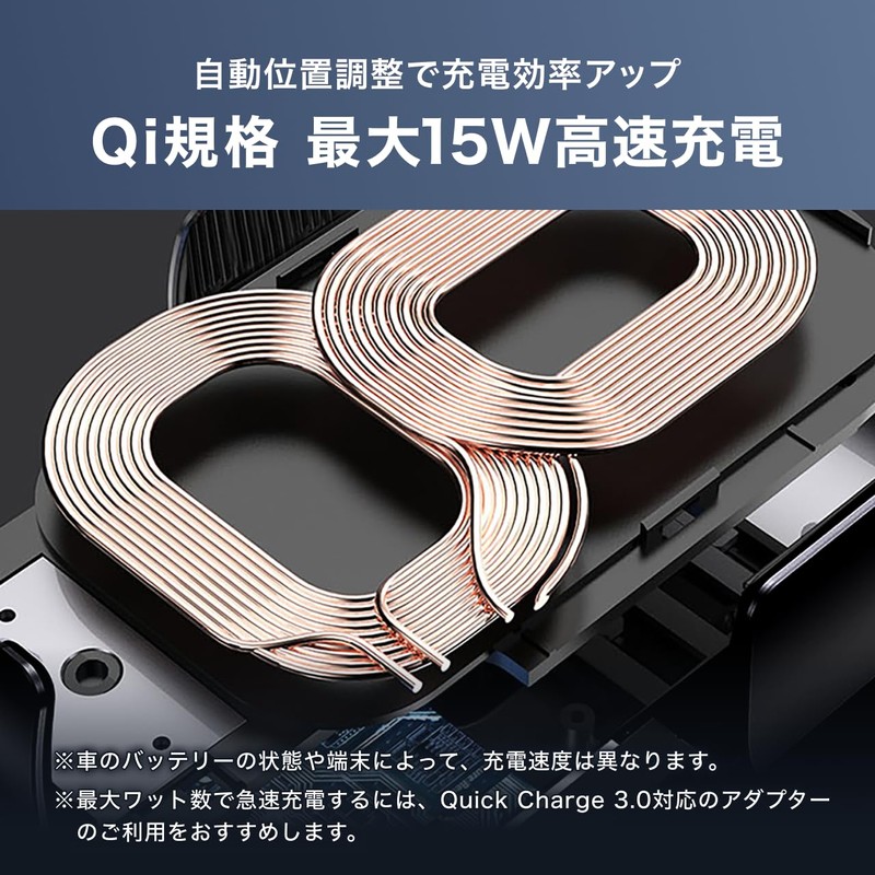• Smartphone Cooling Function | Wireless Fast Charger: This product uses a cooling fan and heat dissipation technology that allows the smartphone to be charged wirelessly at a maximum charging speed of 15 W. reducing heat and battery degradation that can occur when using navigation apps for long periods of time while driving