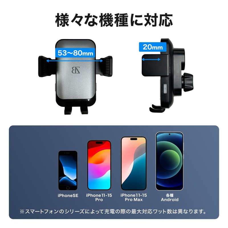CARZEL (2025 Enhanced Version) Auto Detection Function, In-Car Holder, Wireless Charging, Charging Coil Automatically Open/Close, Air Conditioner Outlet Mount, Up to 15W, Rapid Charging, Smartphone