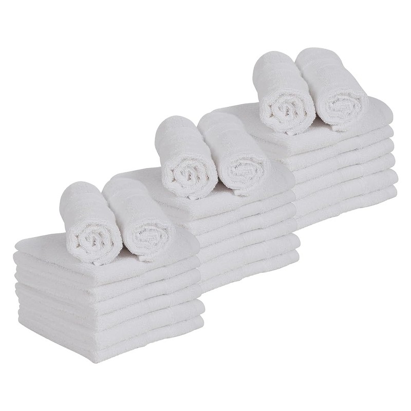 - Set of 24: Our 100% Premium cotton wash cloths for your face and body are designed with a unique weave pattern that maximizes absorbency, quickly whisking away moisture from your skin. Say goodbye to dampness and hello to a refreshing post-shower experience.