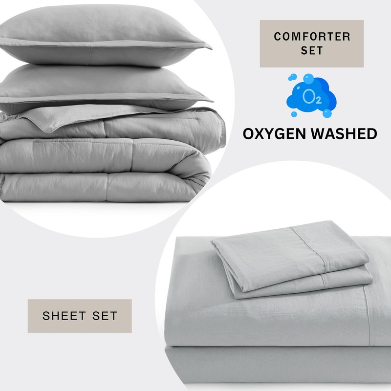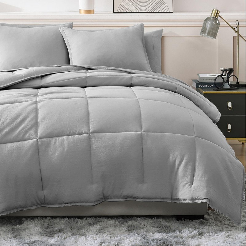 Casa Platino California King Comforter Set Pre-Washed – Brushed Soft Microfiber California King Bedding Set with Comforter, Flat Sheet, Fitted Sheet, 2 Pillowcases & 2 Shams - Silver