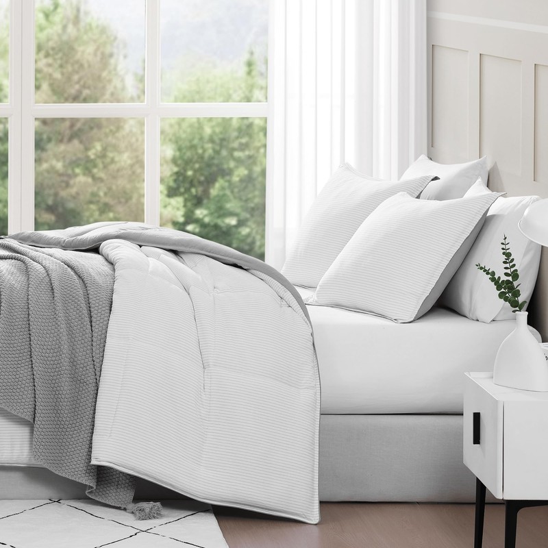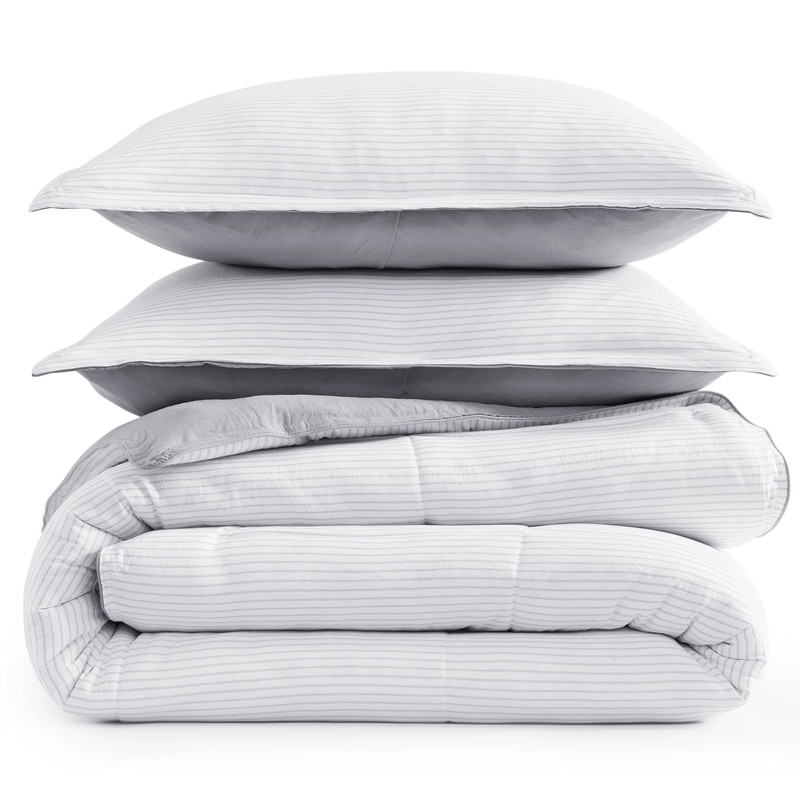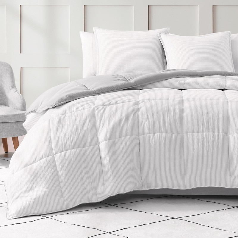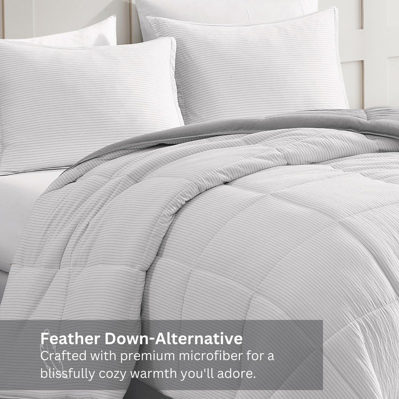 Casa Platino Fluffy Duvet Insert - Pre-Washed Hydro-Brushed 100% Microfiber Comforter Set - Comfy Bedding King Size - Ticking Stripe Silver