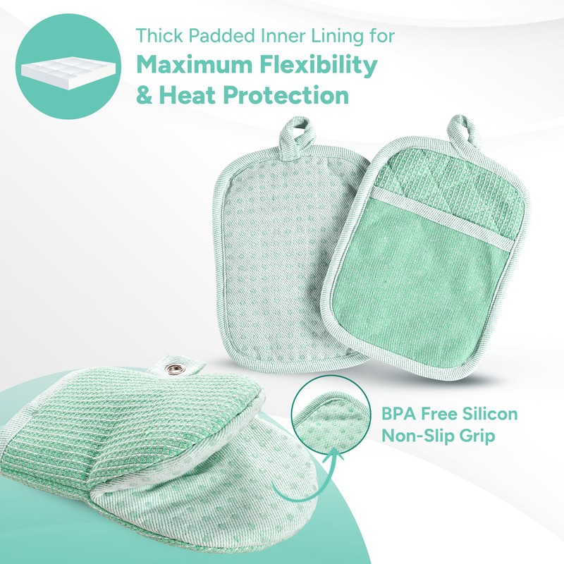 Casa Platino Heat Resistant Oven Mitts & Pot Holders, 4-Piece – Oven Mitt for Baking & BBQ, Potholders for Kitchens – Withstands Heat Up to 500°F, Soft, Durable & Non-Slip – Sage