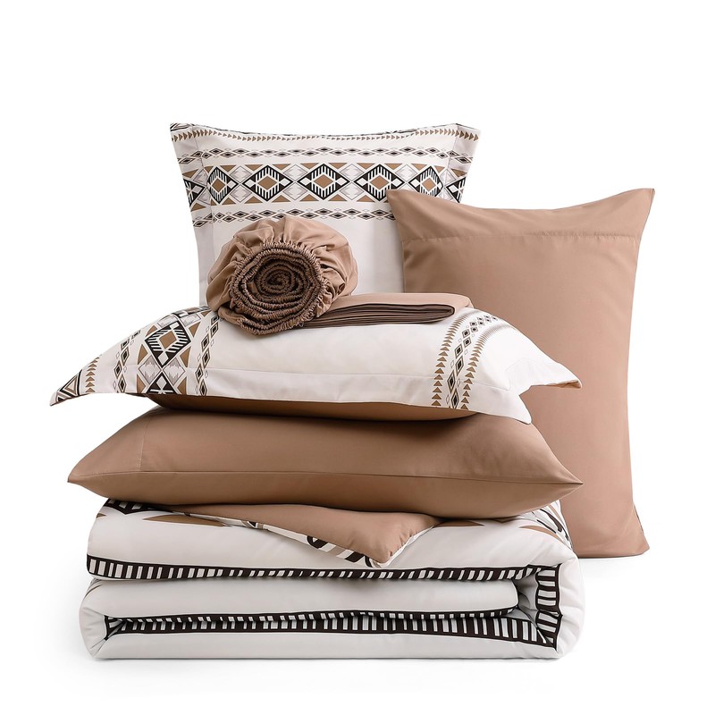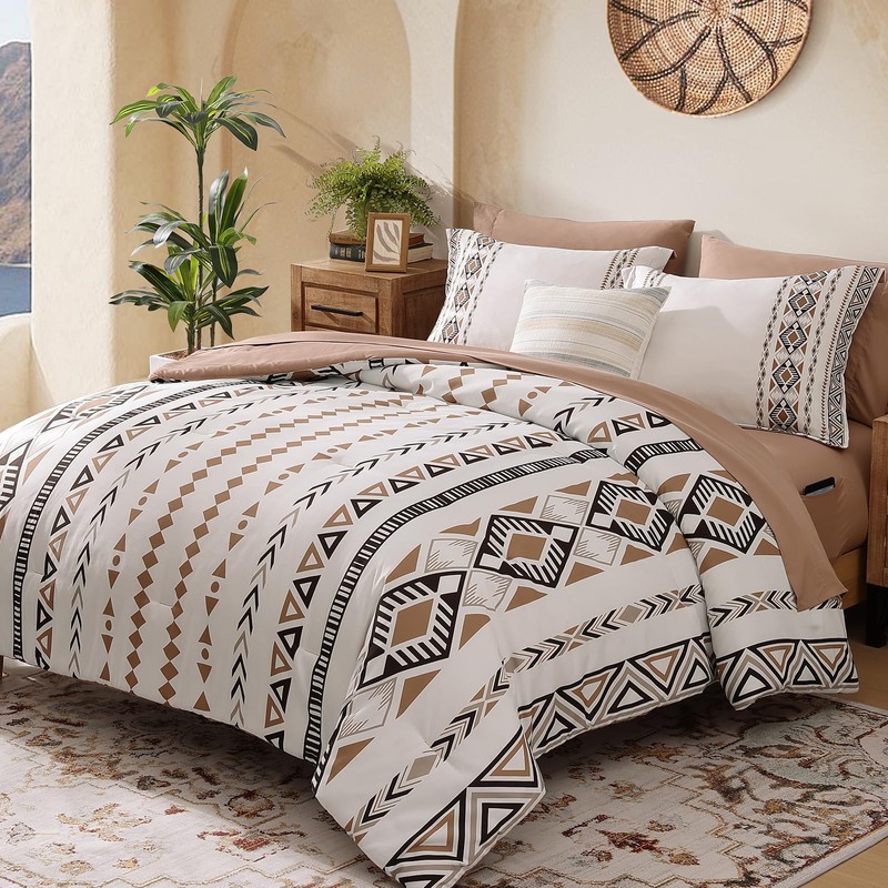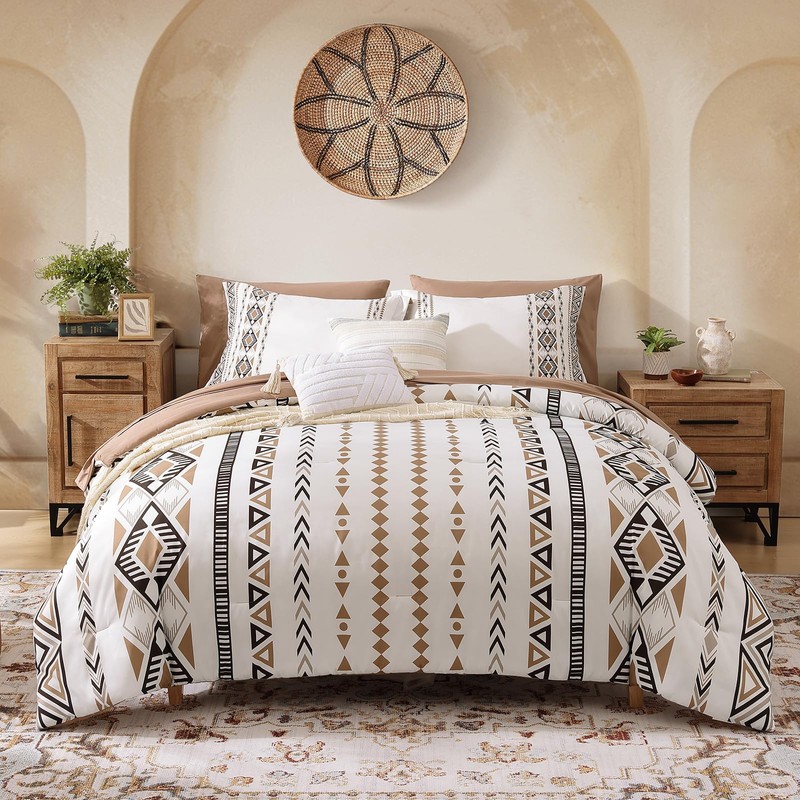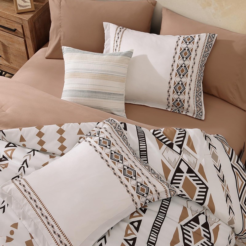 • 【Unique Design】This boho full comforter set is expertly constructed in Brown, tribal geometric patterns printed on one side splicing with dotted-like aztec design on the other side, unique and sophisticated. Casaagusto aztec comforter set will add a touch of mystery yet cozy to your bedroom.