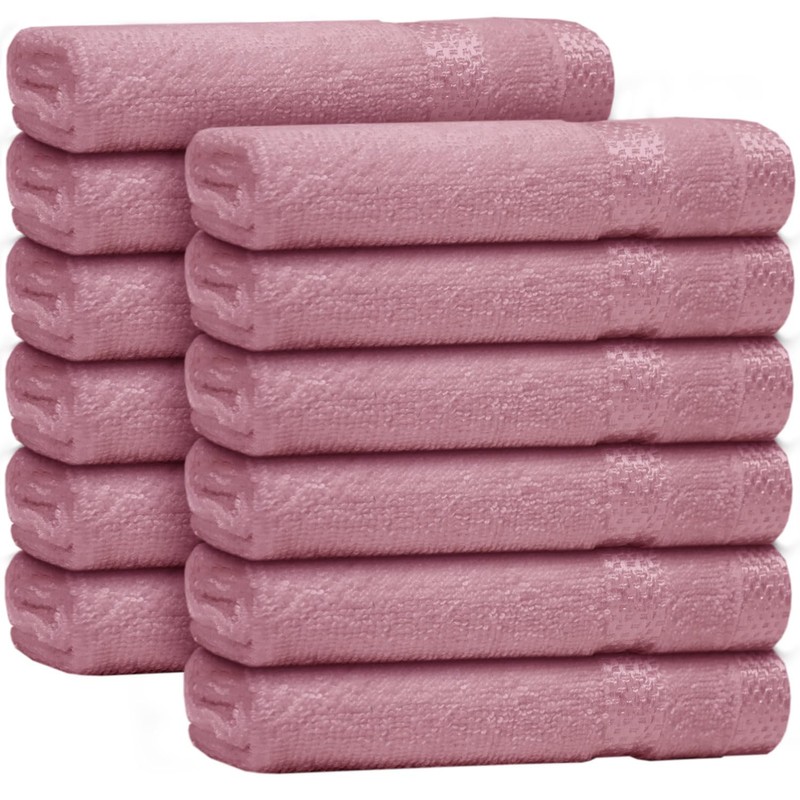 Casabella 12 Pack Flannel Face Cloth - 100% Cotton Face Towels Soft & Absorbent Super Quality Washcloths 30x30CM, Fingertip Towels for Makeup Removal & Cleansing - Pink Face Cloth