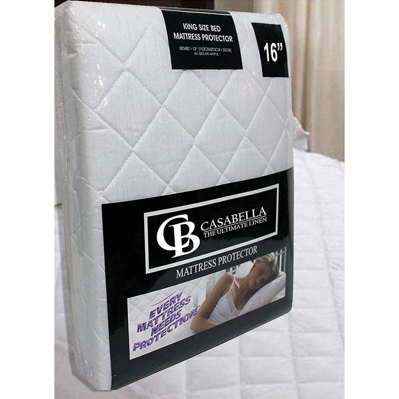 Casabella Extra Deep Double Quilted Mattress Cover 40 cm(16") Fitted Sheet Breathable Hypoallergenic Mattress Portector Double Size Mattress Cover 137x190+40cm