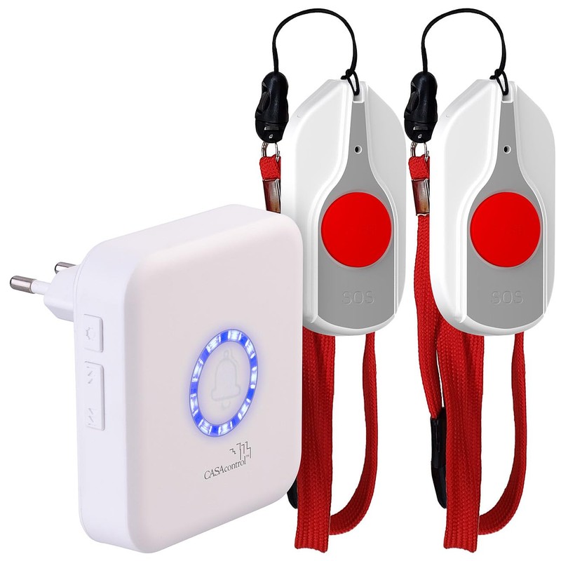 CASAcontrol SOS call buttons: SOS emergency call button set for seniors, 4 x transmitters, 1 x receiver, 110 dB, IP44 (emergency call bells, home emergency call with alarm)