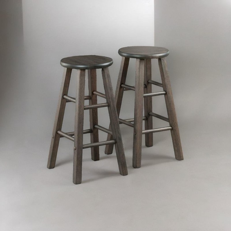 Enhance your kitchen, breakfast nook, or den with the Casafoyer Wood Element Counter Stool Set. These stools, finished in a contemporary oyster gray, effortlessly blend with any decor. Crafted from solid wood, they offer durability and coordination with various furnishings. The sturdy square legs and round seat provide a supportive foundation and can hold up to 220lbs. With 8 crossbars on all sides, these stools offer stability and serve as footrests for added comfort. Perfect for extra seating, entertaining guests, and everyday use. The stools can be easily stored away when not in use. Available in multiple finishes and heights. Conveniently packed in one box with assembly hardware included. Manufacturer offers replacement parts within 60 days of purchase. Overall size: 13.39" x 13.39" x 23.86"H. Weight capacity: 220 lbs. Ships in 1 box. Some assembly required. Dimension: 13.39" W x 13.39" D x 23.86" H. Weight: 15.9 lbs.