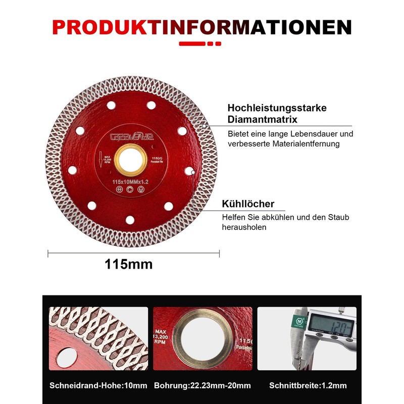 - Super thin turbo mesh edge diamond blade provides fast, precise, smooth and splinter free cutting experience for you