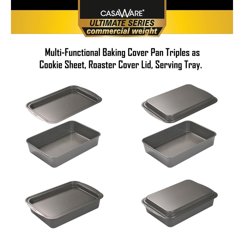 casaWare Ceramic Coated Non-Stick 2pc Bake & Cover Set Ultimate Commercial Weight, 15x10x3-inch Deep Lasagna/Roaster Pan and 14x9.5x3/4-inch Cookie Sheet/Baking Cover Pan with Handles (Silver Granite)