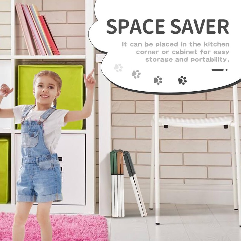 - Save Storage Space: Compact kid's step stools. 12.2" long, 8.1" wide, and 9" high when unfolded. 12.6" long, 1.2" wide, and 12.6" high when folded. It's lightweight enough for kids to move around.