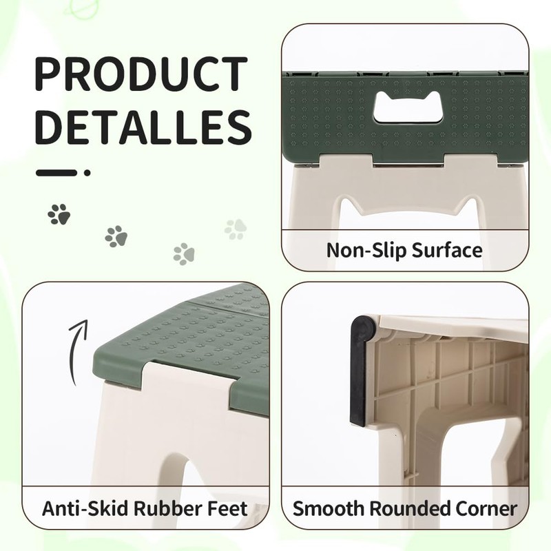 - Sturdiness & Durability: Safe First. Heavy-duty step stool with 300 lbs capacity. There is a non-slip black rubber strap on each foot and a special anti-slip paw design on the surface to prevent slips.