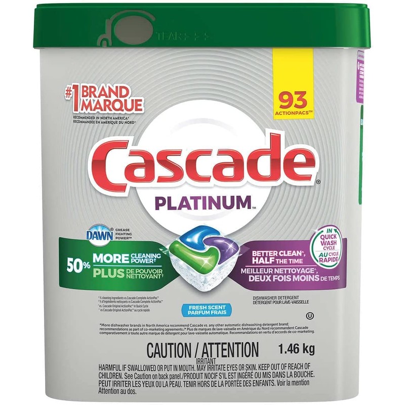 Cascade Platinum ActionPacs Dishwasher Detergent with Dawn, Fresh Scent - 92 Count with 10pct bonus 102 packs